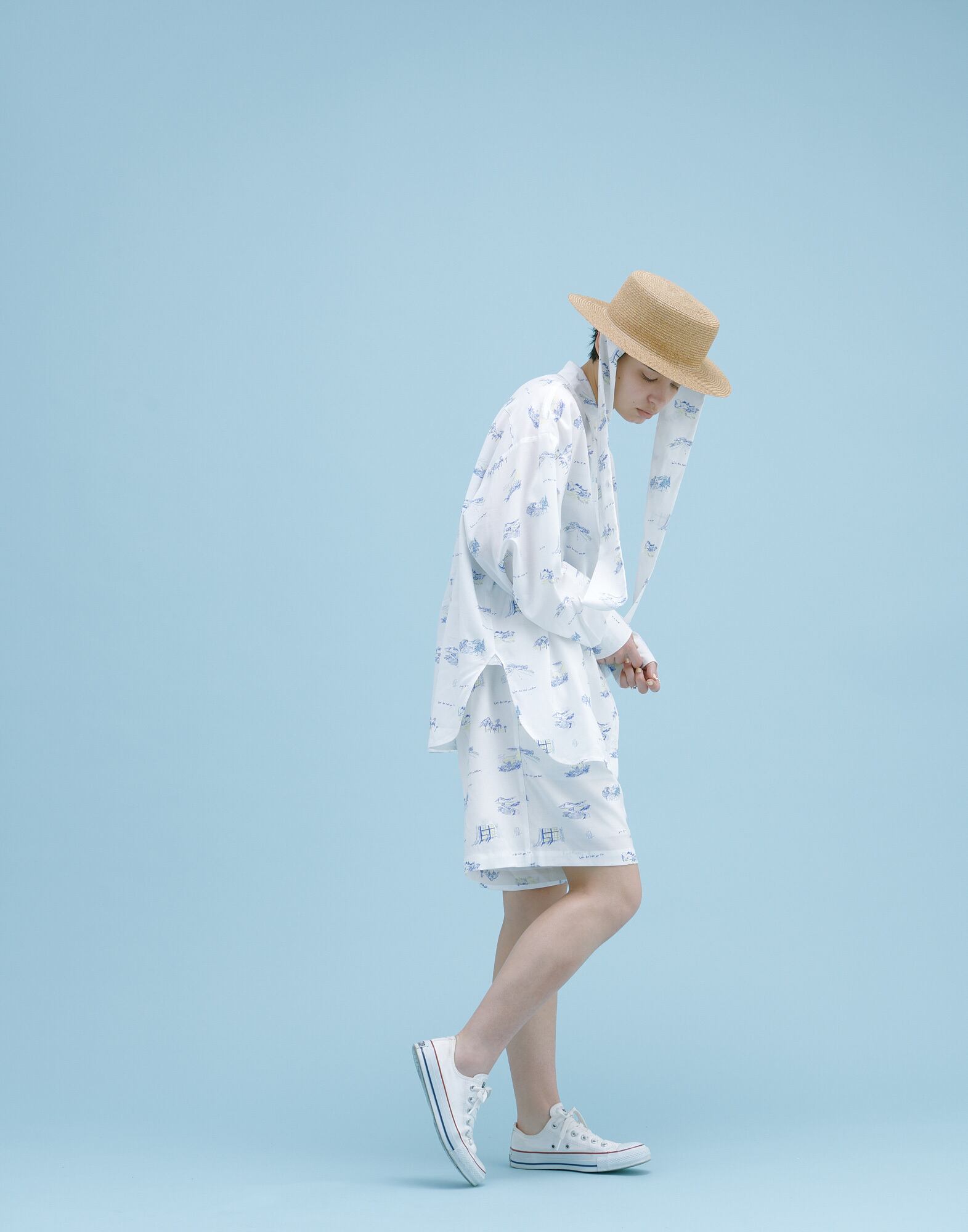 総柄はデザイナーYUUKIのヒストリーをそれぞれモチーフにした様々なオリジナルイラストで構成されています。